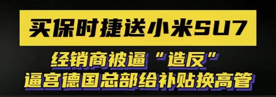 也就有了開(kāi)頭,買(mǎi)保時(shí)捷Taycan送“小米SU7”,經(jīng)銷商被逼“造反”等消息。造反:部分經(jīng)銷商更是停止了進(jìn)車。